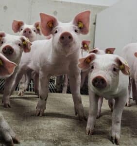 In de biggenafdeling verblijven de biggen na het spenen tot een leeftijd van ongeveer 10 weken. Ze groeien in deze periode van 8 kg naar 25 kg!
